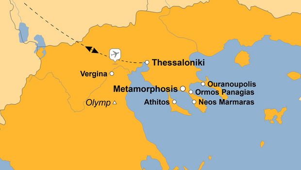 Hören Sie heute auf Ihre Haustürklingel! Denn Ihr Taxi wird Sie von zu Hause abholen und zum Flughafen fahren. Ohne Stress kommen Sie dort an, werden von Ihrem Reisebegleiter in Empfang genommen und checken gemeinsam ein. Kurz darauf hebt Ihr Flieger ab und Sie landen auf Griechenlands schönsten Fingern - Chalkidiki! Pinienwälder und kristallklares Meer, einsame Buchten und idyllische Dörfer, urige Tavernen, offene Menschen und einzigartige Vegetation sind charakteristisch für dieses beeindruckende Gebiet. Nach Ankunft in Thessaloniki begrüßt Sie auch gleich Ihre örtliche Reiseleitung und gemeinsam fahren Sie ins Hotel, wo Sie mit einem kleinen Umtrunk Willkommen geheißen werden. Das Abendessen nehmen Sie im Hotel ein.