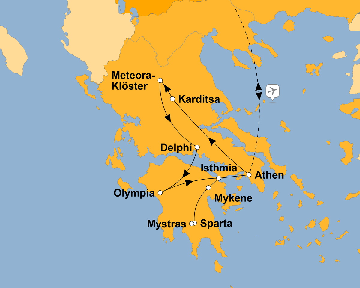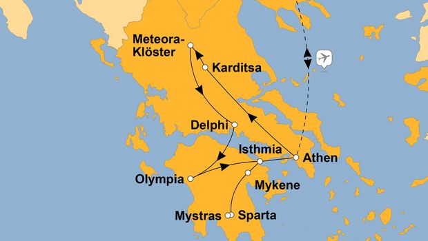 - Stadtrundgang/-fahrt: Athen, Delphi, Olympia, Sparta, Mystras