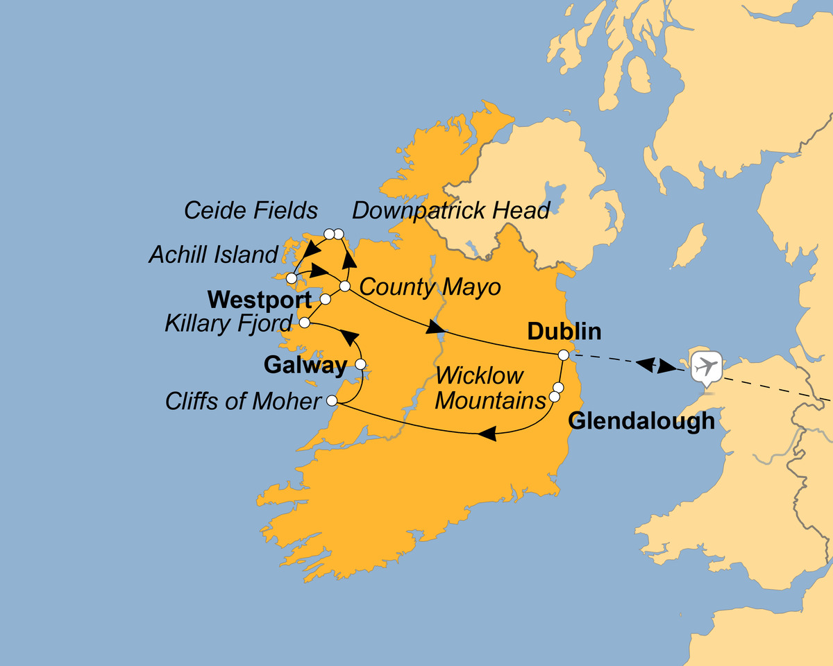 • Besichtigungen und Eintritte: Klosteranlage Glendalough, Besucherzentrum Céide Fields mit Aussichtsplattform, Cliffs of Moher