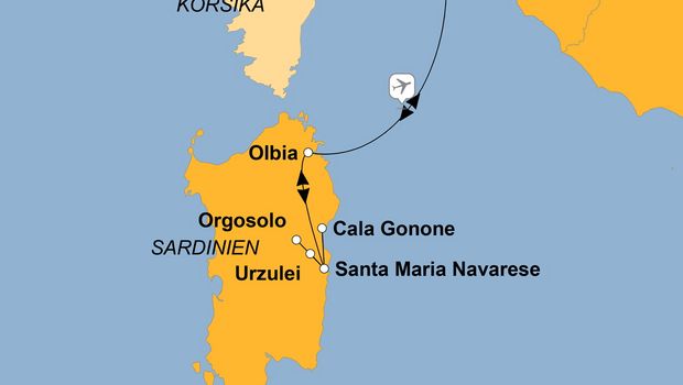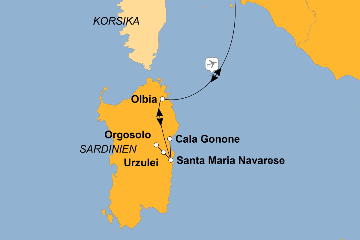 Badeurlaub oder Wanderung in den Bergen? Alle Annehmlichkeiten eines komfortablen Hotels oder ursprüngliche Natur und aktives „Draußensein?“ Ersetzen Sie „oder“ durch „und“ - Sardinien ruft als ideale Verbindung von mediterraner Trauminsel und urig-naturschönem Wanderparadies. Versprochen, dass Sie nach aktiven Wandertagen immer wieder Gelegenheit haben werden, Ihre wandermüden Füße und den Rest Ihres von Tag zu Tag fitter werdenden Körpers in den Mittelmeerfluten zu kühlen. Der Schwerpunkt der Reise liegt aber eindeutig auf der wilden Seite der Insel - ursprünglichen Wanderwegen durch üppige Macchia, über schroffe Küstenwege und zu atemberaubend schönen Hochebenen mit traumhaften Blicken über die ganze Insel.